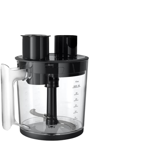 Вінчик і розширений подрібнювач у комплекті з ногою ProMix забезпечують три кулінарні функції в одному пристрої. SplashSafe мінімізує розбризкування. Плавний контроль швидкості адаптує інтенсивність до конкретного рецепту. Ергономічна рукоятка знижує навантаження.