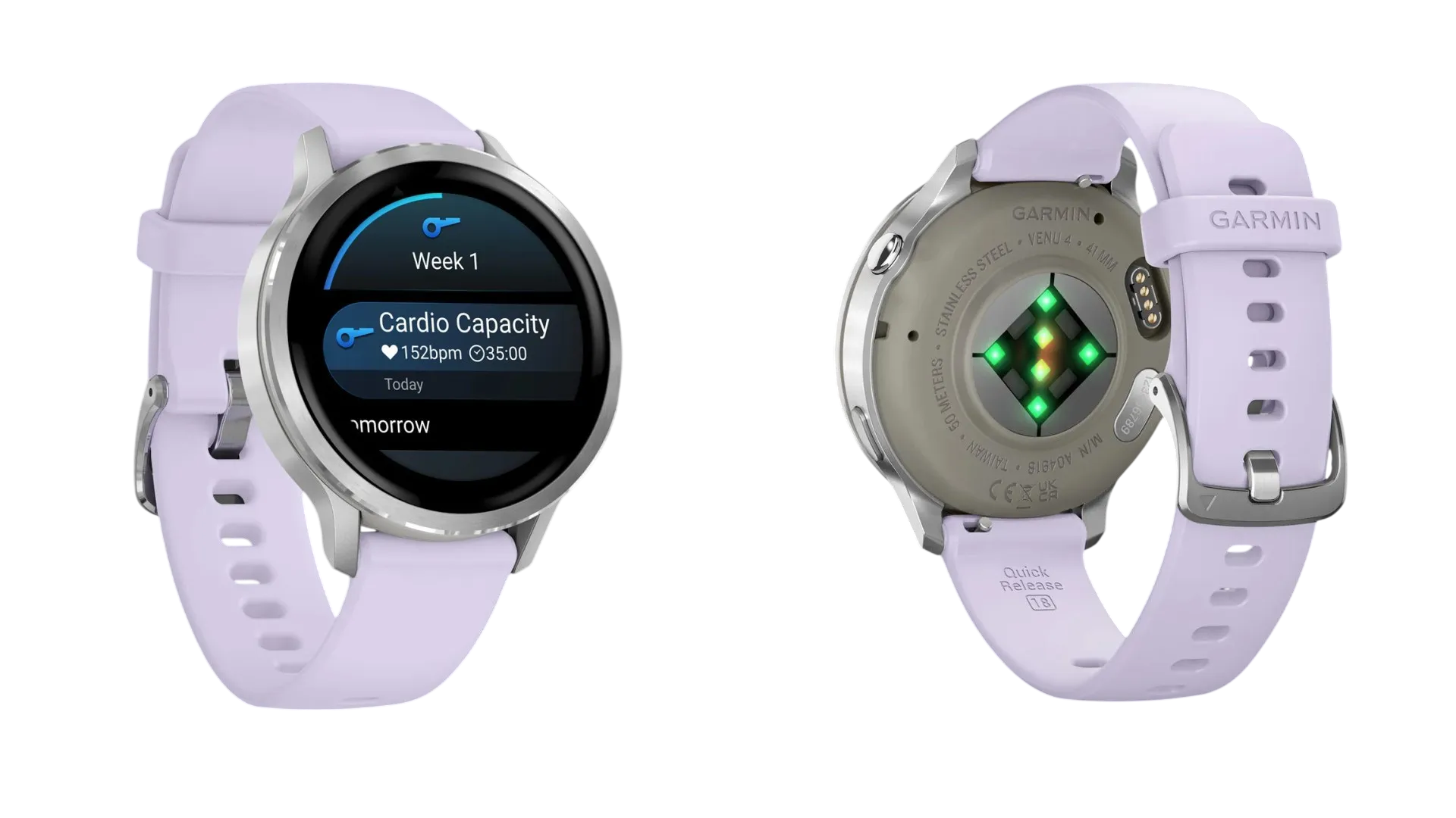 Garmin Venu 4 оснащений яскравим AMOLED-дисплеєм із високою роздільною здатністю, який забезпечує чітке та насичене зображення за будь-якого освітлення. Елегантний корпус і продумана форма роблять годинник комфортним для щоденного носіння — від роботи й прогулянок до тренувань і подорожей.