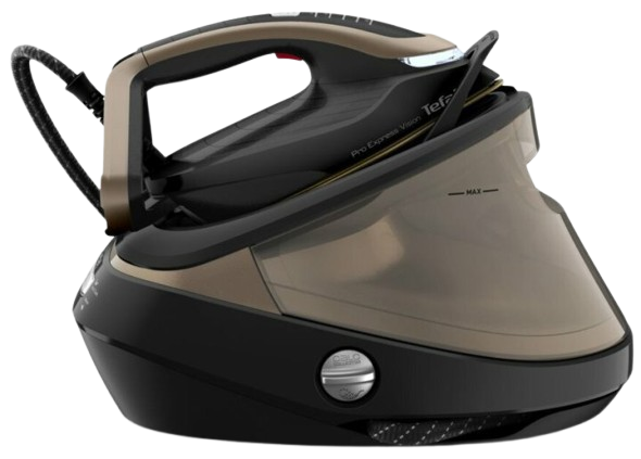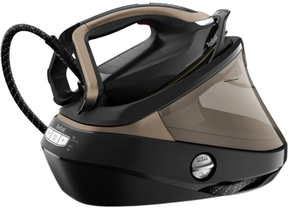 Tefal GV9820E0 — найпотужніший парогенератор серії Pro Express Vision із революційною системою Smart LED Vision: LED-лампочка на носку праски автоматично вмикається в горизонтальному положенні, забезпечуючи ідеальну видимість навіть у погано освітлених кутах. Тиск пари 8 бар і потужність 2700 Вт забезпечують безперервну подачу 140 г/хв та паровий удар 650 г/хв.