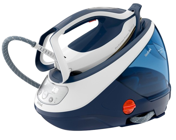 Tefal GV9821E0 — найпотужніша версія серії Pro Express Vision із тиском пари 9 бар і небаченим паровим ударом до 800 г/хв. Пристрій оснащений системою Smart LED Vision — LED-лампою на носку, що автоматично вмикається в горизонтальному положенні для ідеальної видимості навіть у темних куточках. Безперервна подача пари досягає 180 г/хв для швидкого прасування великих обсягів.