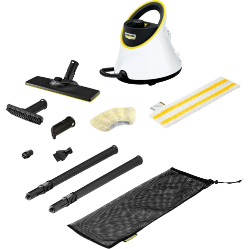 SC 2 Deluxe оснащений аксесуарною сумкою для зручного зберігання насадок і фугової щіткою для ретельного очищення швів і стиків. Паровий котел нагрівається приблизно за 6–7 хвилин, після чого забезпечує безперервну подачу пари. Регулювання інтенсивності пари дозволяє адаптувати очищення під різні типи поверхонь — від делікатного скла до стійкої кераміки.