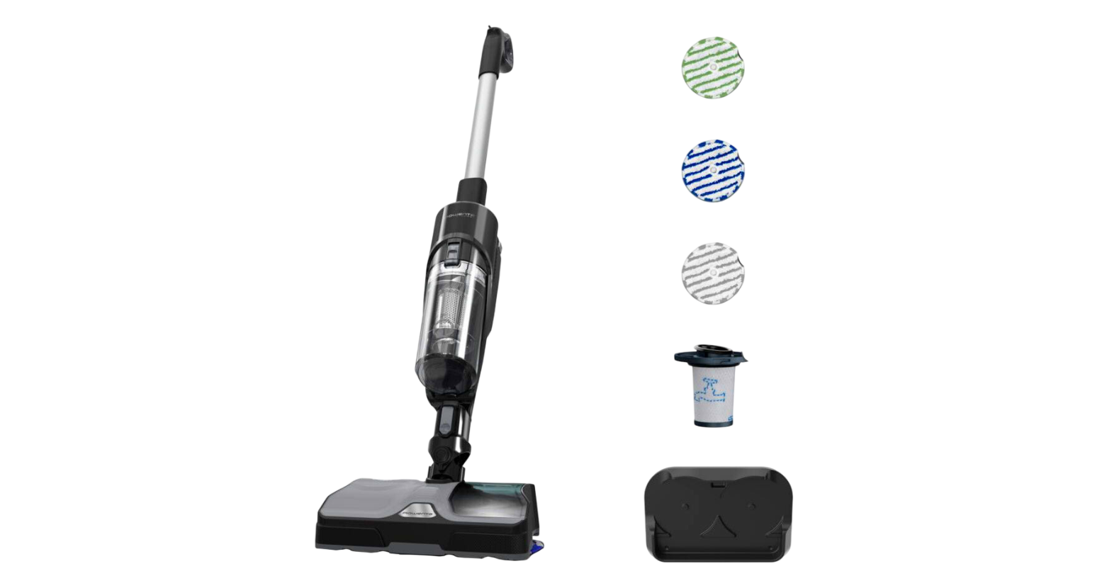 Rowenta X‑Combo — это современный беспроводной моющий пылесос для твердых и ламинированных поверхностей с комбинированной функцией сухой и влажной уборки. Он создан для быстрого, эффективного и удобного поддержания чистоты в доме, сочетая пылесос и мытье пола в одном устройстве.