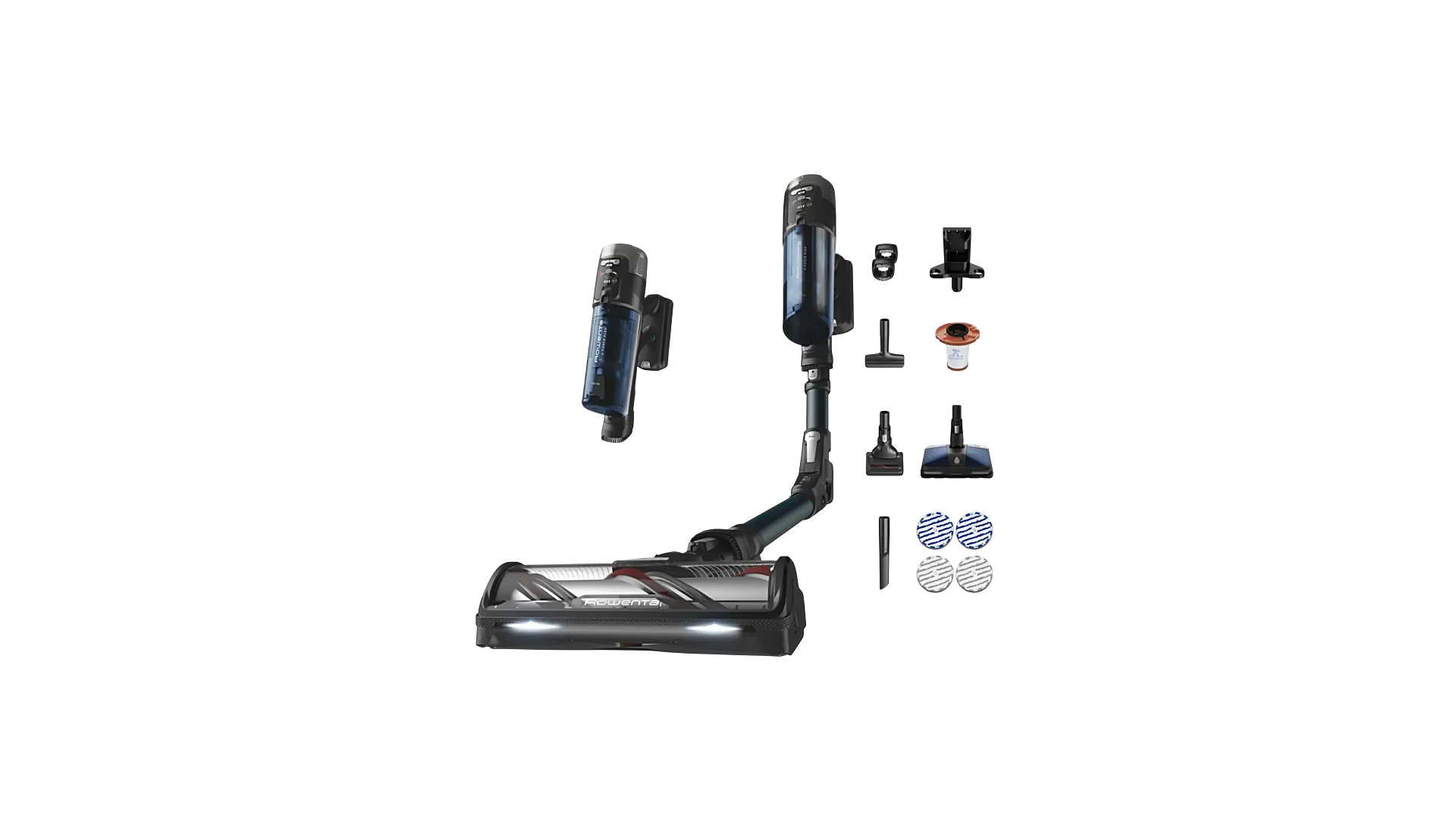 Rowenta X-Force Flex 13.60 Animal Aqua — это современный беспроводной вертикальный пылесос с функцией сухой и влажной уборки, разработанный для максимально эффективной очистки различных поверхностей в доме. Он сочетает высокую мощность всасывания, гибкую технологию Flex и специализированные насадки для уборки шерсти животных и сложных загрязнений.