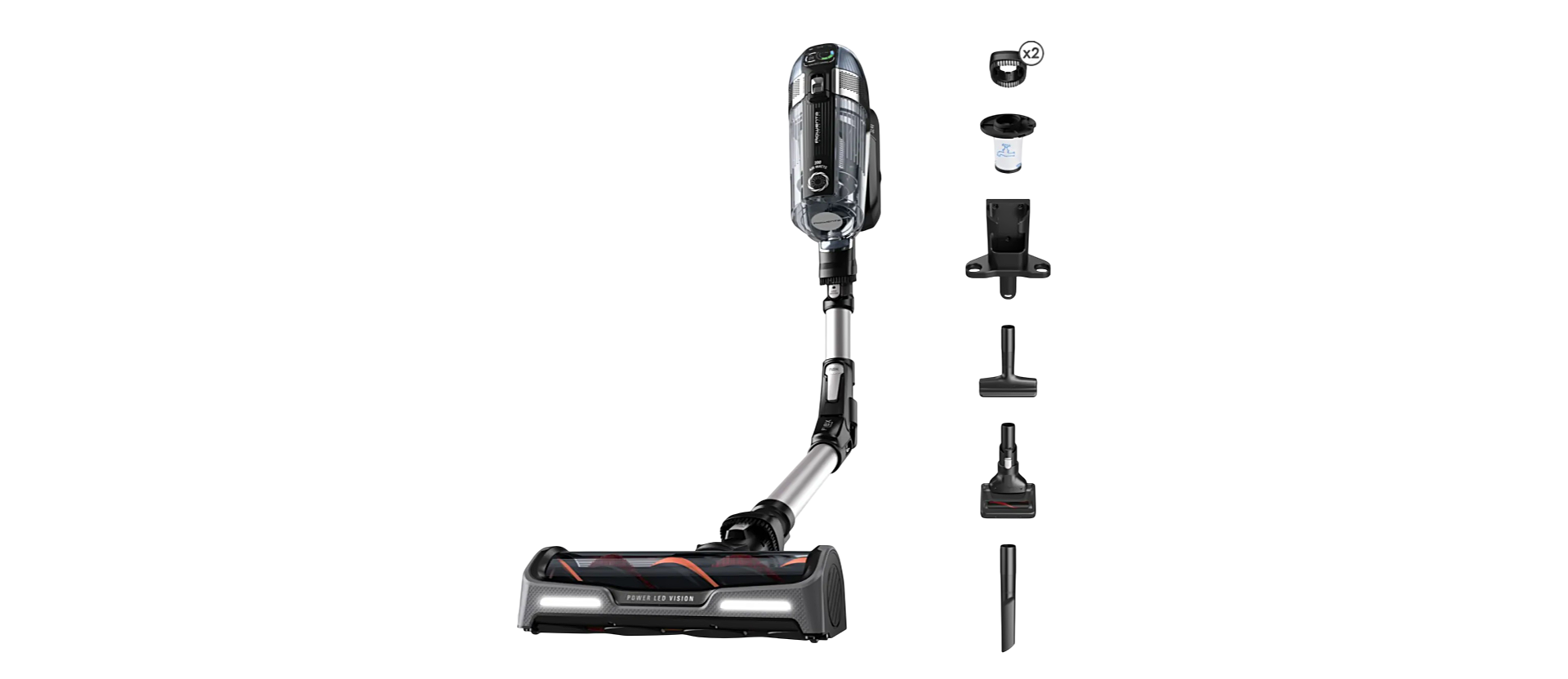 В комплект входят основная щётка с LED-подсветкой, щелевая насадка, насадка для мебели и мини-турбощётка. Это позволяет эффективно убирать пол, мебель, автомобиль и труднодоступные места.