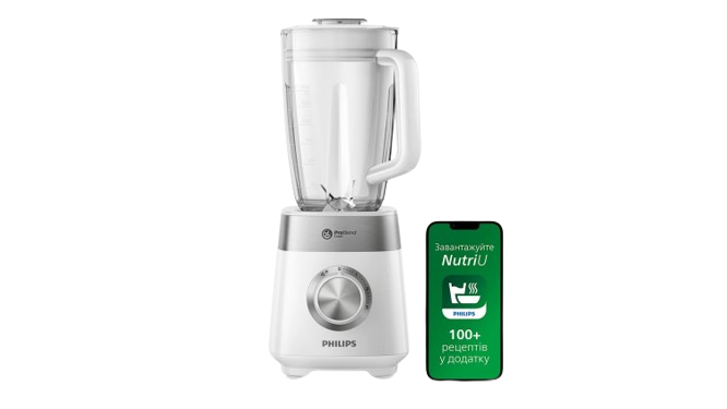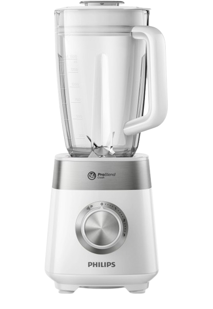 Philips HR2224/00 — стационарный блендер Viva Collection мощностью 600 Вт с кувшином ёмкостью 1,75 л для приготовления больших порций смузи, соусов и коктейлей для всей семьи. Технология ProBlend оптимизирует форму ножей и дизайн кувшина для равномерного и эффективного блендирования.