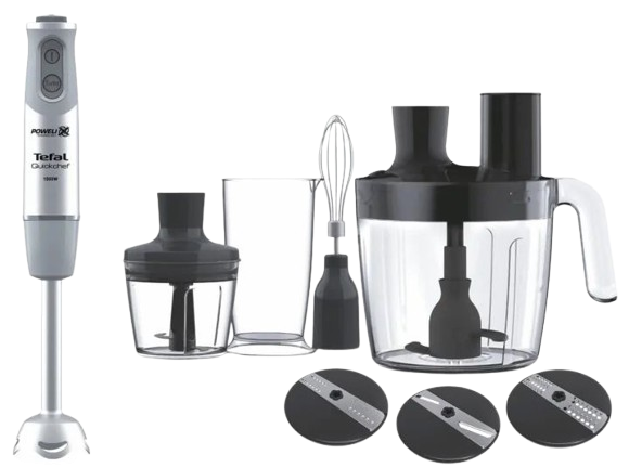 Tefal HB65LD38 — мощный погружной блендер 1000 Вт в выразительном современном дизайне с полным набором аксессуаров. Колоколообразная ножка с лезвиями Powelix эффективно блендирует и измельчает широкий спектр ингредиентов. Антибрызговой кожух защищает кухню от брызг во время работы.