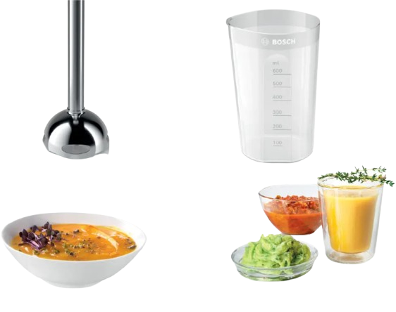 Bosch MSM2620B — погружной блендер серии CleverMixx с металлической ножкой и лезвиями QuattroBlade из нержавеющей стали для эффективного и длительного блендирования. Металлическая конструкция ножки повышает долговечность и устойчивость к износу по сравнению с пластиковыми аналогами.