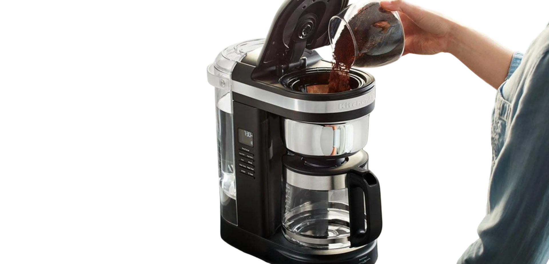 KitchenAid 5KCM1209 оснащена функцией программирования, которая позволяет настроить время приготовления кофе заранее. Интуитивная панель управления делает процесс использования простым и комфортным в повседневной жизни.